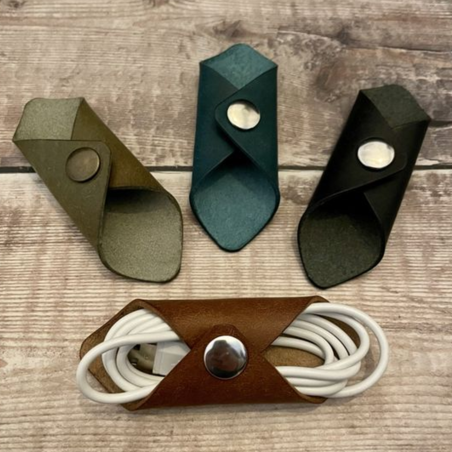 Leather Cable Tidy, oval stud close | Cord Ties | Organise | Cable Tidy | Travel accessory | Charge Cable Ties| Headphone Organiser