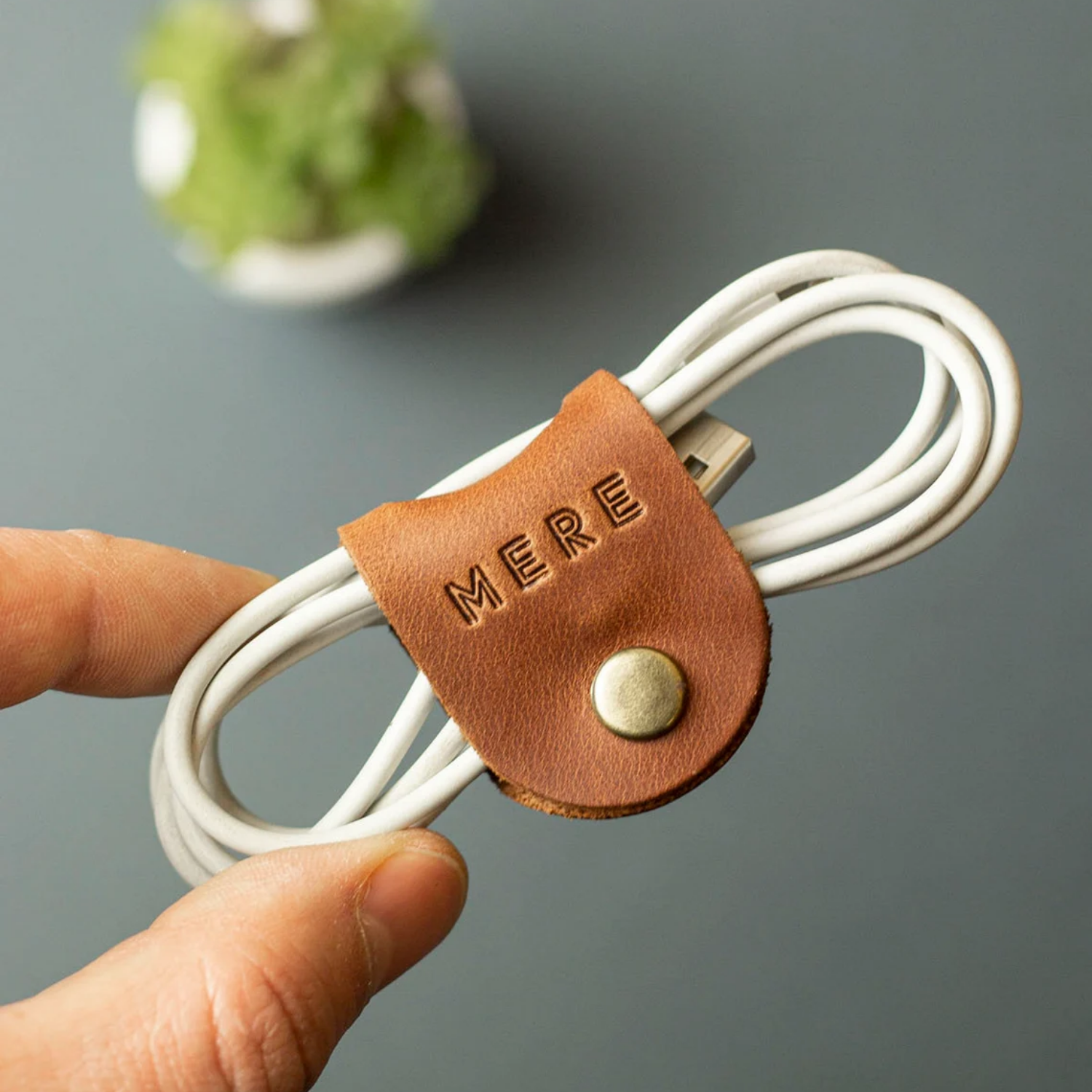 Personalized Leather Cord Organizer Cable Organiser Headphone Holder Cord Keeper.
