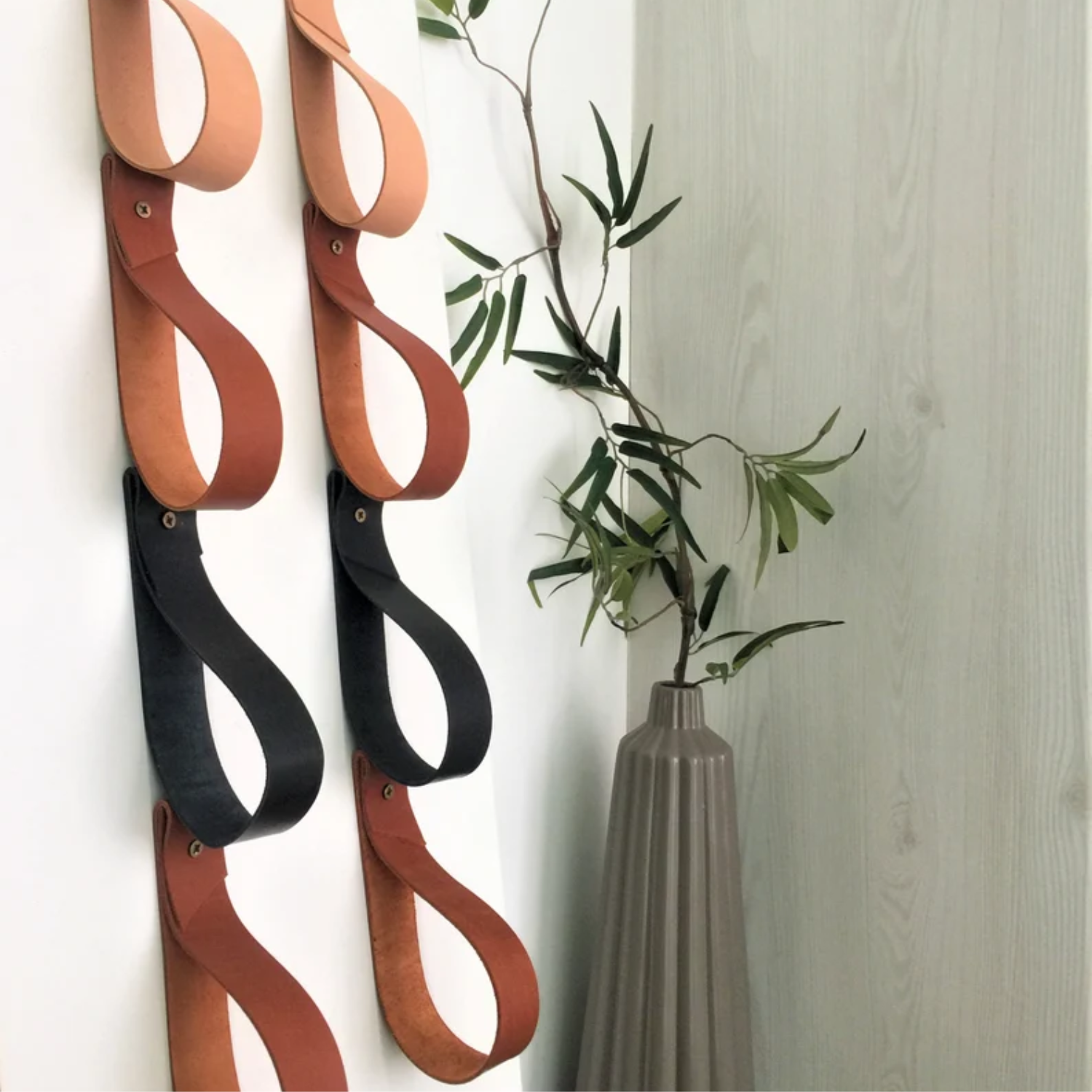 The leather strap will be a good addition to give your interior a new look. They can be used in many ways, you can use it like a Wine Rack , magazine rack , towel rack in the kitchen or bathroom . Use two leather wall hooks plus driftwood to hang larger items such as towels, fabric storage, or even as a curtain rod hanger.