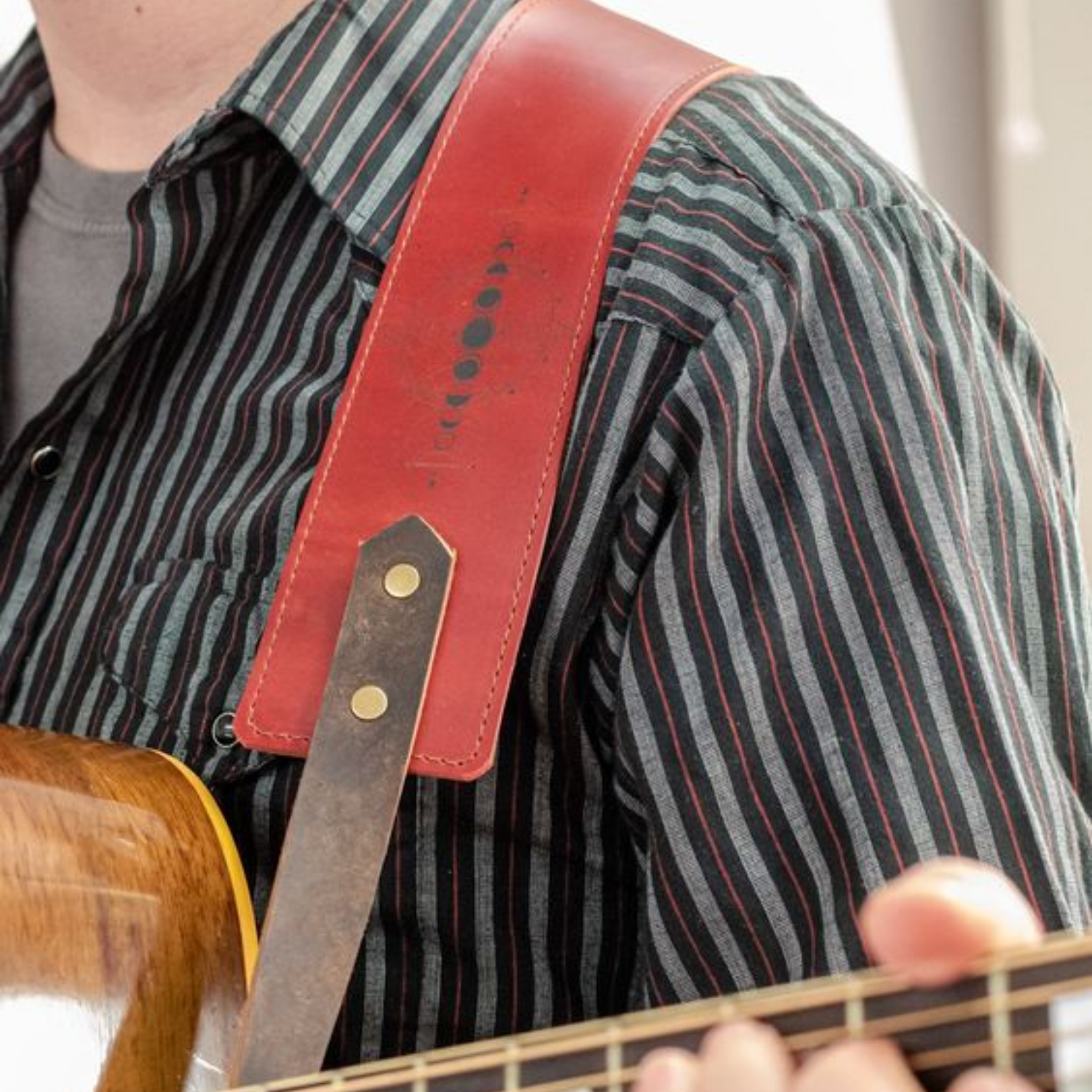 Product Description: Say Hello to your new favorite guitar strap! We love our new laser engraver, and we are so excited to bring you the first wave of personalized items using engraving from In Blue Handmade! Check out these beautiful handmade guitar and banjo straps, made from our eco-tanned,