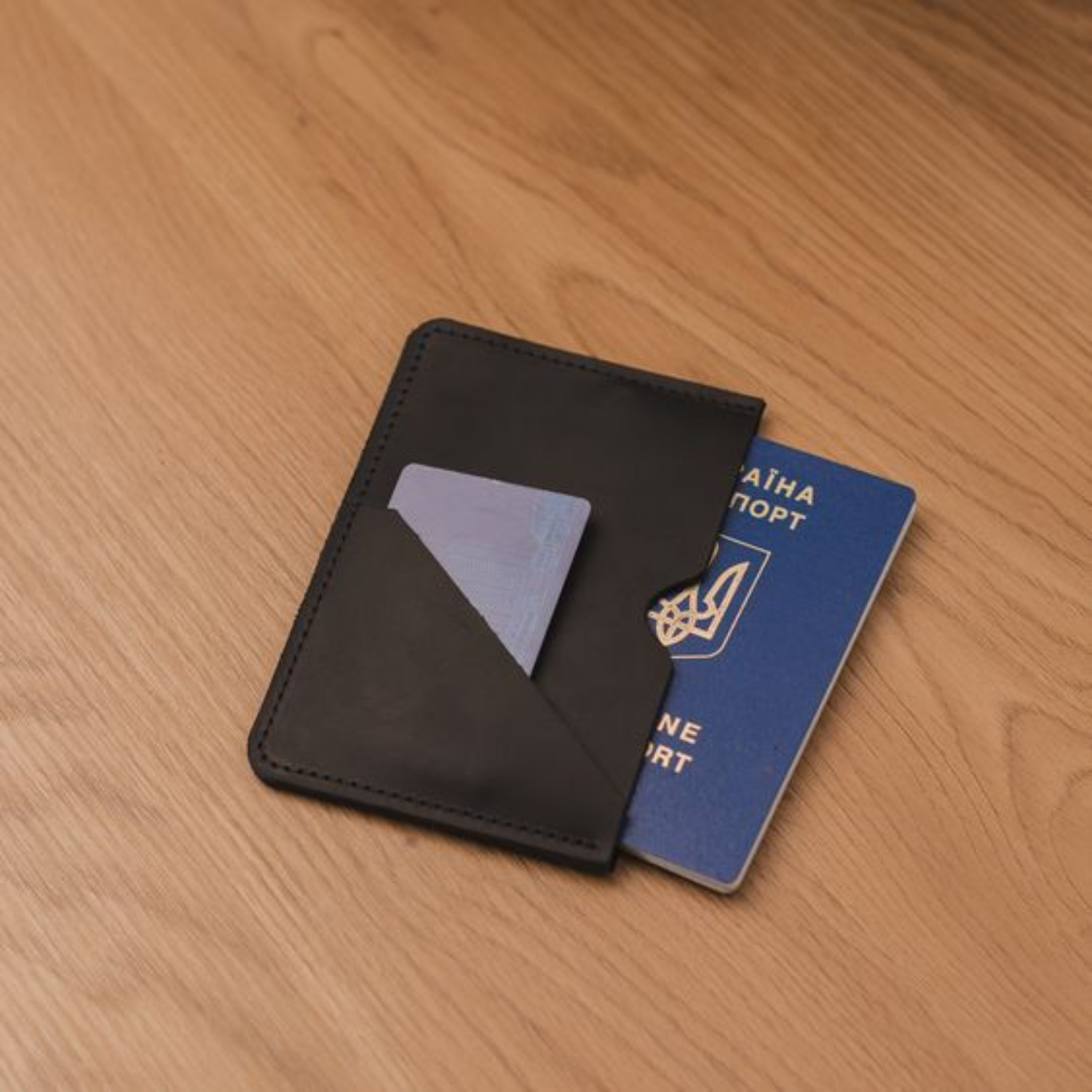 FEATURES : - Vegan leather, smooth, grained, crocodile finish... your choice - 4 storage spaces (1 credit card, 1 passport and 2 interiors for cards, tickets or papers. - Unique piece, 100% handmade - High-end finish with edge dyeing.